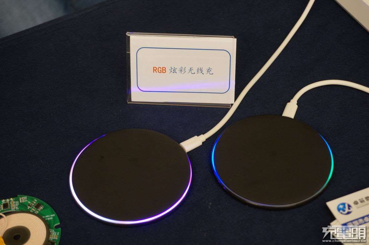 RGB炫彩无线充电方案。卓芯微讲解员介绍:上述任何一款无线充电器方案都可以通过搭配灯效IC的方式实现流光溢彩的效果。