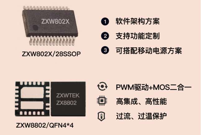 此次论坛卓芯微特别推出☝一款驱动、MOS二合一芯片:ZXW8802/QFN4*4;专为无线充方案设计,体积小,集成度高,节省PCB空间,拥有极高性价比。
